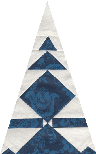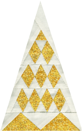 quilt: top row triangles plus row 1-6 with triangles and sashings. I